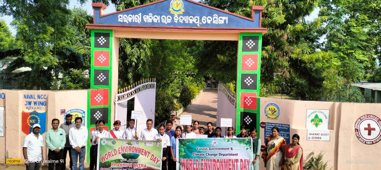 ଆଜି ସାରା ବିଶ୍ୱ ରେ ଗୋଟିଏ ହିଁ ଚର୍ଚା ପରିବେଶ କେମିତି ଭଲ ରହିବ ସେହି ପରିପେକ୍ଷିରେ ଆଜି ସ୍ଥାନୀୟ ସରକାରୀ ବାଳିକା ଉଚ୍ଚ ବିଦ୍ୟାଳୟ, କେସିଙ୍ଗାରେ ବିଶ୍ୱ ପରିବେଶ ଦିବସ ବିଦ୍ୟାଳୟର ଇକୋ କ୍ଲବ ଭାରପ୍ରାପ୍ତ ଶିକ୍ଷକ ଶ୍ରୀ ସୁନୀଲ୍ କୁମାର ପାତ୍ରଙ୍କ ନେତୃତ୍ବରେ ପାଳିତ ହୋଇଯାଇଛି। କେସିଙ୍ଗା ବନ ବିଭାଗର ମିଳିତ ସହଯୋଗରେ ପରିବେଶ ସୁରକ୍ଷା ଓ ପ୍ଲାଷ୍ଟିକ ପ୍ରଦୂଷଣ ମୁକ୍ତ ପୃଥିବୀ ବିଷୟବସ୍ତୁ ଆଧାରରେ ଜନ ସଚେତନତା ଶୋଭାଯାତ୍ରା ଓ ବିଦ୍ୟାଳୟ ପରିସରରେ ବୃକ୍ଷ ରୋପଣ କାର୍ଯ୍ୟକ୍ରମମାନ ଆୟୋଜନ କରାଯାଇଥିଲା। ଏହି ଅବସରରେ ଆୟୋଜିତ ସଭାରେ ମୁଖ୍ୟ ଅତିଥି ରୂପେ ଶ୍ରୀ ହେମନ୍ତ କୁମାର ସାହୁ ଯୋଗ ଦେଇ ପରିବେଶ ସୁରକ୍ଷା କେବଳ ବିଭାଗୀୟ ଦାୟିତ୍ୱ ନ ହୋଇ ଏକ ସମ୍ମିଳିତ ସାମାଜିକ ପ୍ରୟାସ ହେବା ଉଚିତ ବୋଲି ନିଜ ବକ୍ତବ୍ୟରେ ଅଭିଭାଷଣ ପ୍ରଦାନ କରିଥିଲେ। ସମ୍ମାନିତ ଅତିଥି ଭାବରେ ଧନଞ୍ଜୟ ନିଆଲ୍ ଜଙ୍ଗଲ ସୁରକ୍ଷା କରିବାରେ ଛାତ୍ରଛାତ୍ରୀ ତଥା ଜନ ସାଧାରଣମାନଙ୍କର ଗୁରୁତ୍ୱପୂର୍ଣ୍ଣ ଭୂମିକା ସମ୍ପର୍କରେ ଆଲୋକପାତ କରିଥିଲେ। ଶ୍ରୀଇନ୍ଦ୍ର ମଣି ମାଝୀ, ସାନନ୍ଦ ଚନ୍ଦ୍ର ସାଗର , ଶ୍ରୀ କହ୍ନେଇଲାଲ୍ ସାହୁ, ଜସ୍ମିନ ନାଏକ, ଶ୍ରୀ ସୁନୀଲ୍ ସାହୁ, ପଦ୍ମନାଭ ରଣା ଓ ଜି.କ୍ରିଷ୍ଣା ରେଡ୍ଡୀ ପ୍ରମୁଖ ଉପସ୍ଥିତ ଥିଲେ। ଏହି ଅବସରରେ ଆୟୋଜିତ ଚିତ୍ରକଳା ପ୍ରତିଯୋଗିତାର ବିଜୟିନୀମାନଙ୍କୁ ଶୂଚୀ ସ୍ମିତା କୁମାର,ରେଜିୟା କୁମାର, ସୋନାକ୍ଷୀ ଠାକୁର, ପାୟଲ ଦୀପ ଓ ଶୁଭଶ୍ରୀ ସେଠୀଙ୍କୁ ପୁରସ୍କୃତ କରାଯାଇଥିଲା ।