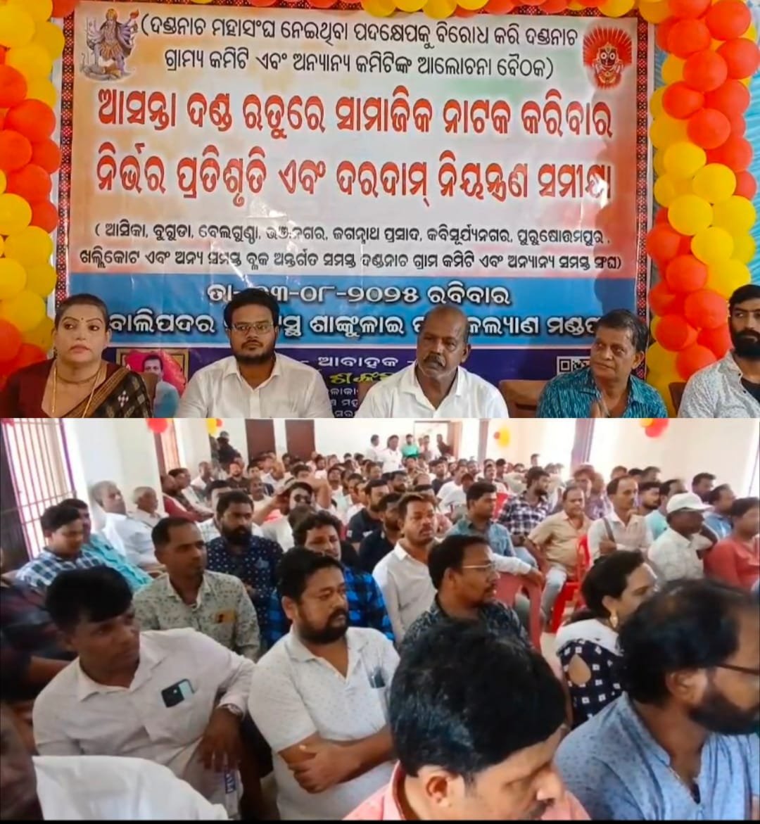 ଗଞ୍ଜାମ/ବୁଗୁଡ଼ା (ସ୍ବ.ପ୍ର) ଗଞ୍ଜାମ ଜିଲ୍ଲା ର ପ୍ରସିଦ୍ଧ ଲୋକ ନୃତ୍ୟ ଦଣ୍ଡନାଚ କୁ ନେଇ ପୁଣି ତେଜିଛି ବିବାଦ l ୨୦୨୬ ଠାରୁ ଦଣ୍ଡ ନାଚରେ ସାମାଜିକ ନାଟକ ପରିବେଷଣ ଉପରେ ଦଣ୍ଡନାଚ ମହାସଂଘ ରୋକ ଲଗାଇଥିବା ବେଳେ ଏହାକୁ ବିରୋଧ କରି ଅଗଷ୍ଟ ୩ ତାରିଖ ଦିନ ଗଞ୍ଜାମ ଜିଲ୍ଲା ର ବହୁ ଦଣ୍ଡ ନାଚ ପାର୍ଟି ସଦସ୍ୟ ଏକତ୍ରିତ ହୋଇଥିବା ଦେଖିବାକୁ ମିଳିଛି ଅଞ୍ଚଳର ବରିଷ୍ଠ କଳାକାର ତଥା ଦକ୍ଷିଣାଞ୍ଚଳ ଜୋନ ସରପଞ୍ଚ ସଂଘ ସଭାପତି ଭବାନୀଶଙ୍କର ମଲ୍ଲିକ ଙ୍କ ଆହ୍ୱାନ କ୍ରମେ ବୁଗୁଡ଼ା ବ୍ଲକ ମା’ଶାଙ୍କୁଳାଇ ପୀଠ ଠାରେ ଏକ ବୈଠକ ଅନୁଷ୍ଠିତ ହୋଇଯାଇଛି l ଏହି ବୈଠକରେ ମହାସଂଘ ପକ୍ଷରୁ ନିଆଯାଇଥିବା ସାମାଜିକ ନାଟକ ପରିବେଷଣ ବନ୍ଦ ନିଷ୍ପତି ବେଆଇନ l ଏହି ନିଷ୍ପତି ଅନେକ କଳାକାର ଙ୍କ ରୋଜଗାର ଛଡାଇନେବାର ସମ୍ଭବାନା ରହିଛି l ଆର୍ଟିଷ୍ଟ, ବାଦ୍ୟ ବାଦକ, ଲାଇଟ ଏଣ୍ଡ ସାଉଣ୍ଡ ଭଳି ବିଭିନ୍ନ କଳାକାର ବର୍ଷକର ରୋଜଗାର ହରାଇବେ l ତେଣୁ ସମସ୍ତ ଙ୍କ ସ୍ୱାର୍ଥ କୁ ଦୃଷ୍ଟିରେ ରଖି ମହାସଂଘ ନେଇଥିବା ନିଷ୍ପତି କୁ ପରିବର୍ତ୍ତନ କରି ନାଚର ଦର ନିୟନ୍ତ୍ରଣ ଓ ଅସିଳତା ବନ୍ଦ ଉପରେ ପଦକ୍ଷେପ ନେବାକୁ ଦାବି କରାଯାଇଛି l କାର୍ଯ୍ୟକ୍ରମରେ ଦଣ୍ଡ ନାଚ ମହାସଂଘ ର ବହୁ ସଦସ୍ୟ ଙ୍କ ସମେତ ଜିଲ୍ଲା ର ପାଖାପାଖି ୩୮ ଟି ଦଣ୍ଡନାଚ ପାର୍ଟିର ସଦସ୍ୟ ମାନେ ଯୋଗ ଦେଇଥିବା ବେଳେ ଏହି ଦାବି ଉପରେ ମହାସଂଘର କମିଟି ମାନଙ୍କୁ ନେଇ ଆଲୋଚନା କରାଯିବ ବୋଲି କହିଛନ୍ତି ଦଣ୍ଡନାଚ ମହାସଂଘ ସଦସ୍ୟ l