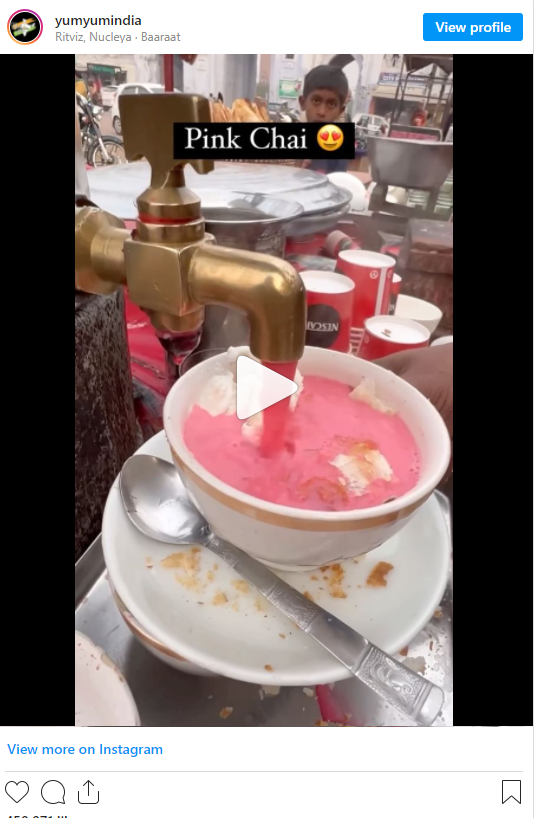 ସୂଚନା ଅନୁସାରେ, @yumyumindia ଇନଷ୍ଟାଗ୍ରାମରେ ଏକ ଭିଡିଓ ପୋଷ୍ଟ କରିଥିଲେ, ଯେଉଁଥିରେ ଲୋକମାନେ ରାସ୍ତା କଡ଼ରେ ଗୋଲାପୀ ଚା ’ପରିବେଷଣ କରୁଥିବା ଦେଖାଯାଇଥିଲା ।