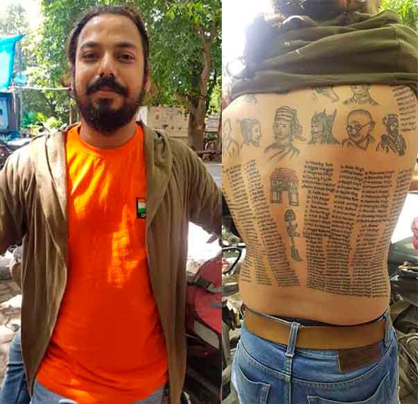 ସହିଦଙ୍କୁ ଶ୍ରଦ୍ଧାଞ୍ଜଳି ଦେବା ପାଇଁ ଶରୀର ସାରା ଟାଟୁ